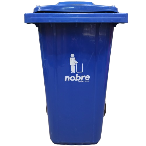 Contentor plástico para descarte de resíduos sólidos, tipo carro coletor, ideal para uso em ambientes industriais e comerciais.
