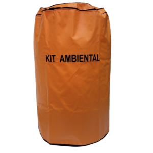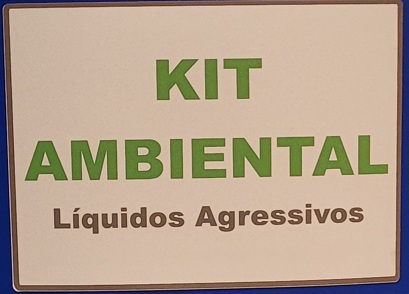 Etiqueta de identificação na face externa da bombona, contendo a inscrição "KIT AMBIENTAL - Líquidos Agressivos".