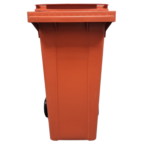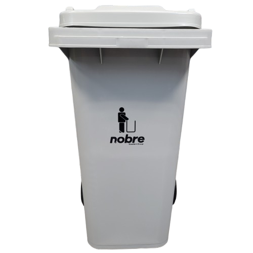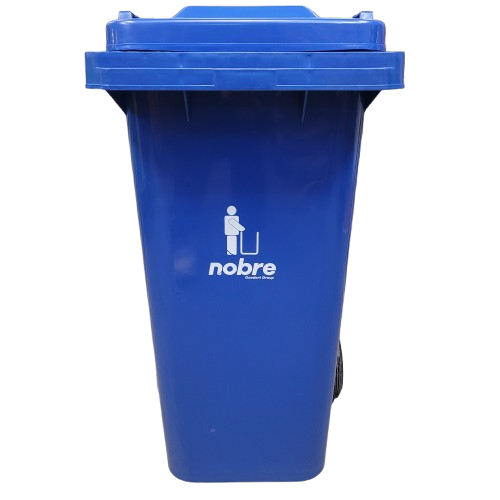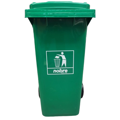 Contentor plástico para descarte de resíduos sólidos, tipo carro coletor, ideal para uso em ambientes industriais e comerciais.